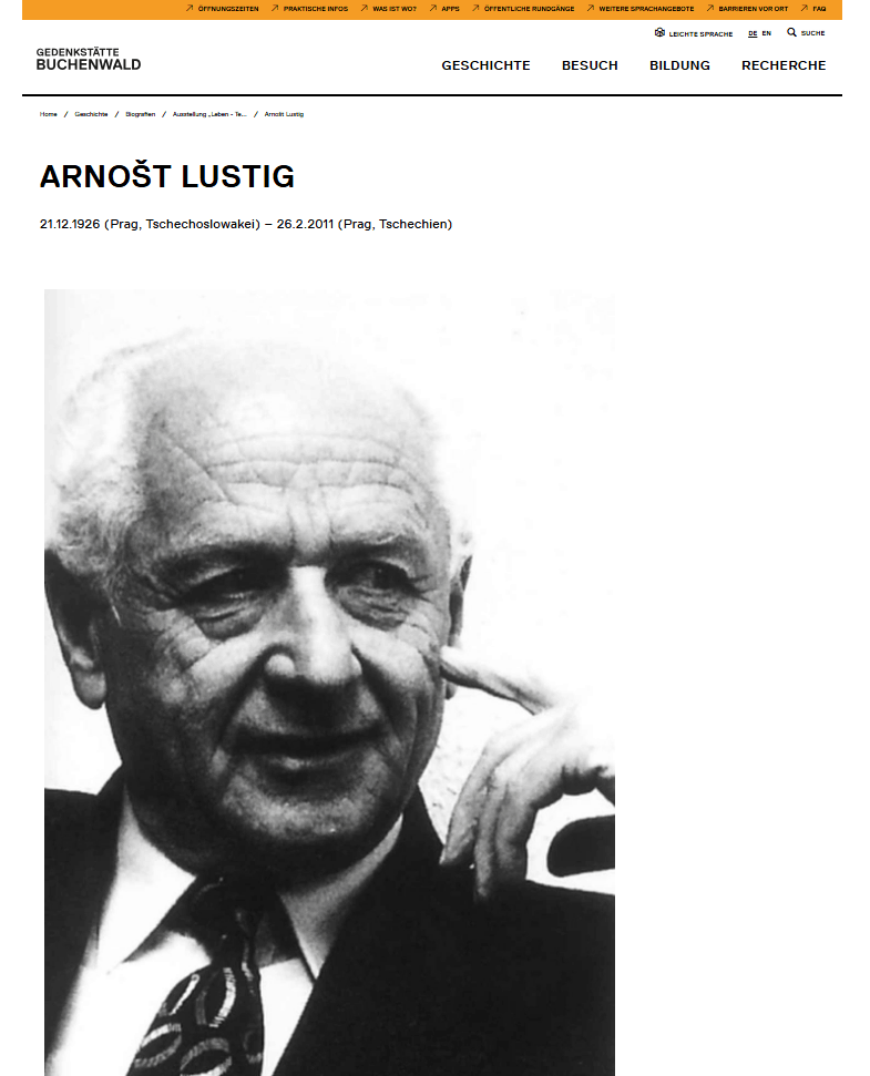 Arnoštu Lustigovi je věnována samostatná stránka na webu Památníku Buchenwald.